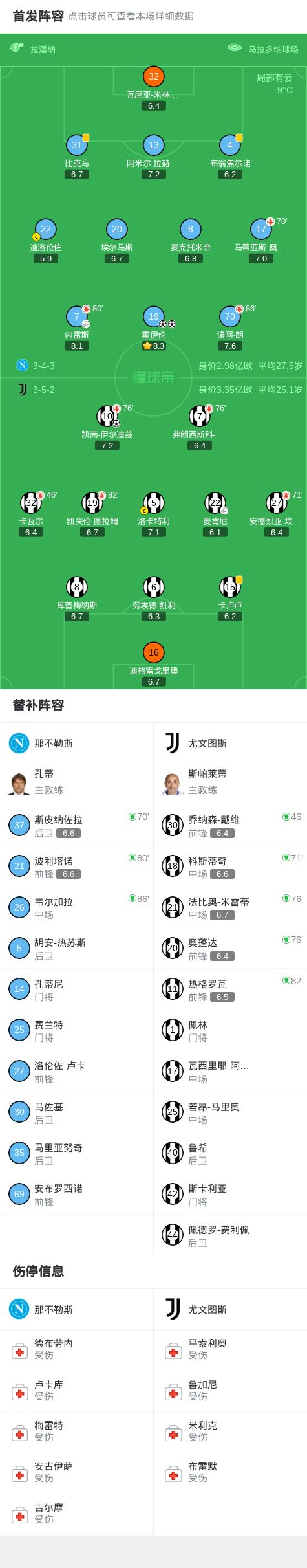 第75分钟,小孔塞桑和伊尔迪兹下场,换上米雷蒂和奥蓬达