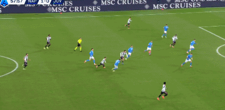 第7分钟,内雷斯下底横传,霍伊伦门前包抄破门!那不勒斯1-0尤文