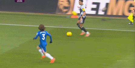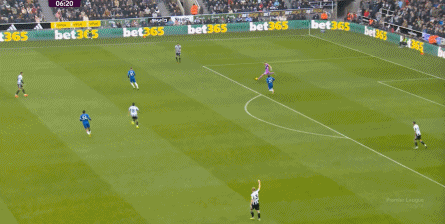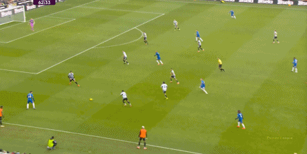 在此之后,切尔西又获得了一次左侧射门的机会,过程中你可以看到,纽卡斯尔的高大后卫们已经控制不住切尔西的锋线活动了: